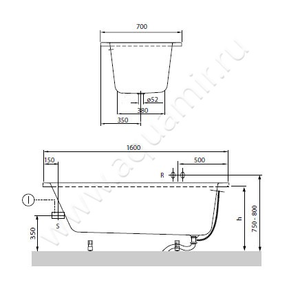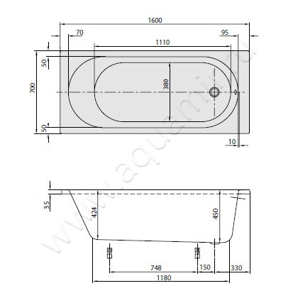 Ванна акриловая Villeroy & Boch O.novo 160x70 (UBA160CAS2V-01)