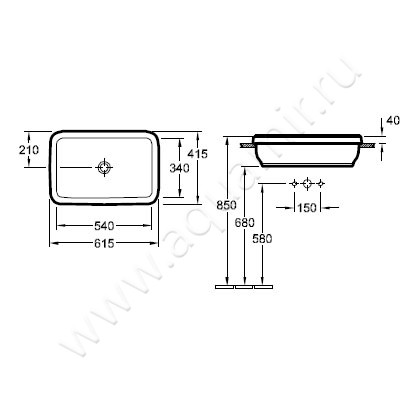 Раковина встраиваемая сверху на столешницу без отверстий Villeroy & Boch Architectura 61,5 см, фарфор, белый глянец/white alpin (41676001)