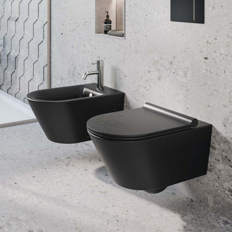 Унитаз подвесной Catalano NEW ZERO с крышкой микролифт, 55 см, безободковый, черный матовый, артикул товара 1VS55NRNS + 5SCSTPNS, страна производства Италия.