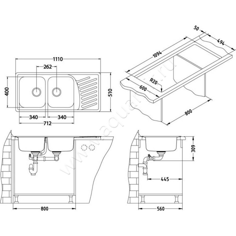 Кухонная мойка Alveus ELEGANT 111 см (1009386)