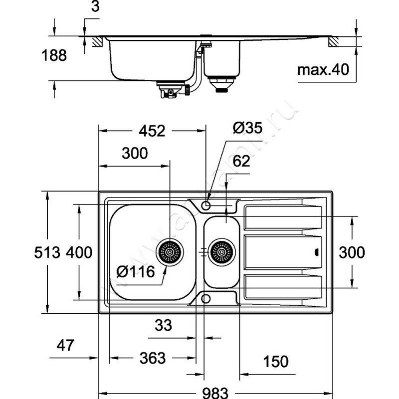 Кухонная мойка Grohe K400 98 см (31569SD0)