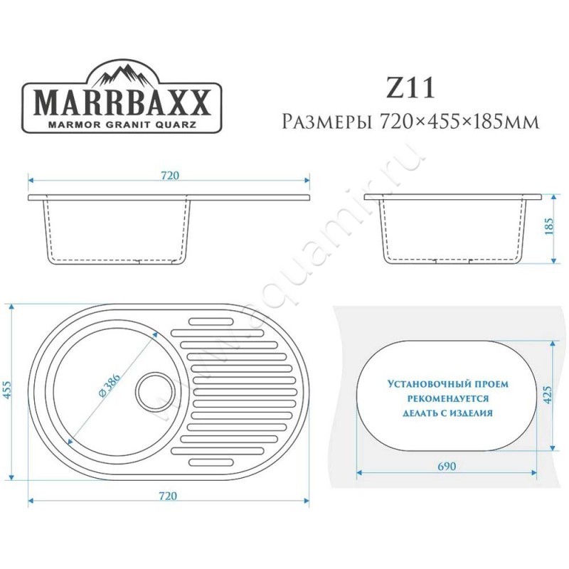 Кухонная мойка Marrbaxx Касандра 73 см, артикул товара Z110Q001, страна производства Россия.