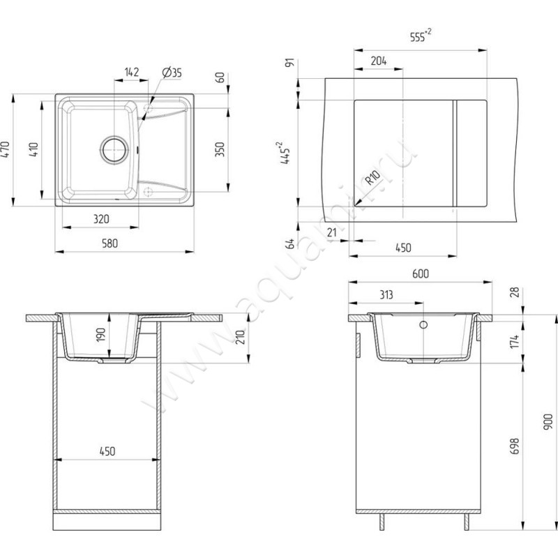 Кухонная мойка Ulgran U-201 58 см (U-201-328)