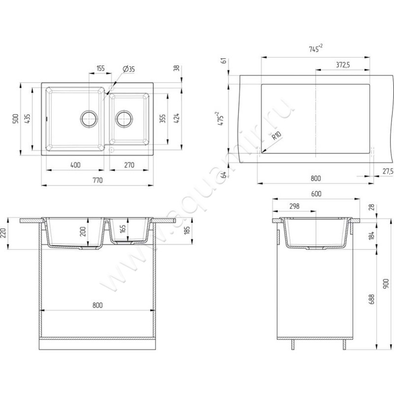 Кухонная мойка Ulgran U-505 77 см (U-505-331)