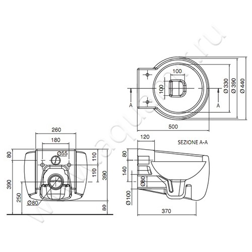 - Модель унитаза предназначена для подвешивания на стену при помощи системы инсталляции