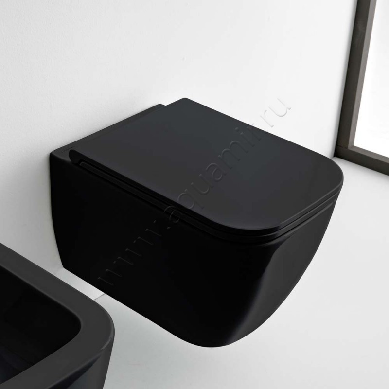 Унитаз подвесной Scarabeo TEOREMA 2.0 с крышкой микролифт, 52 см, безободковый, черный (5126CL35 + 8305B35)