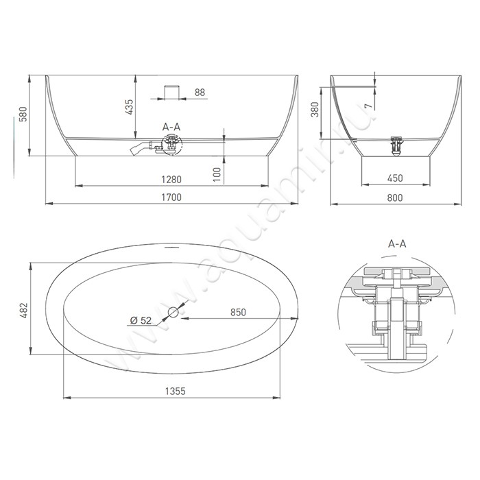 - Диаметр слива - 52 мм