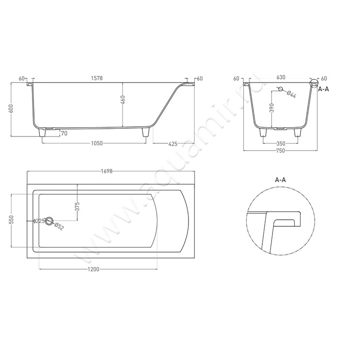 - Диаметр слива - 52 мм