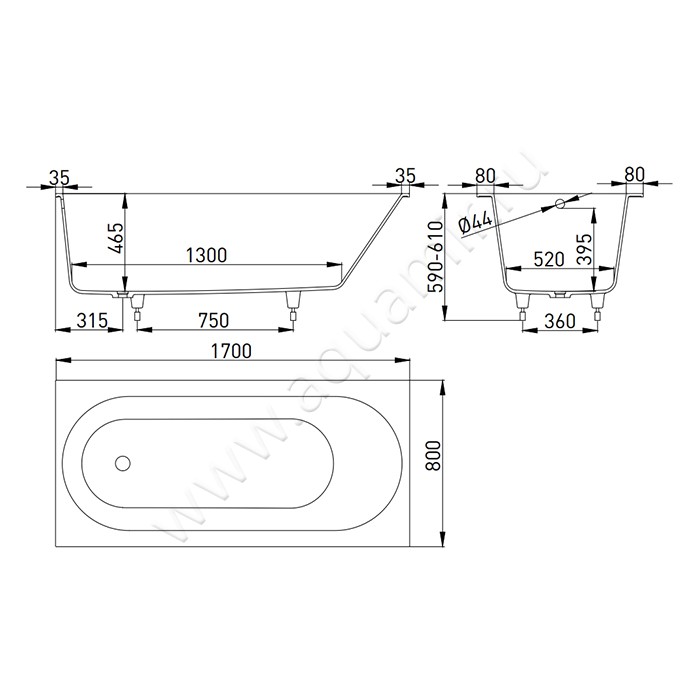 - Диаметр слива - 52 мм
