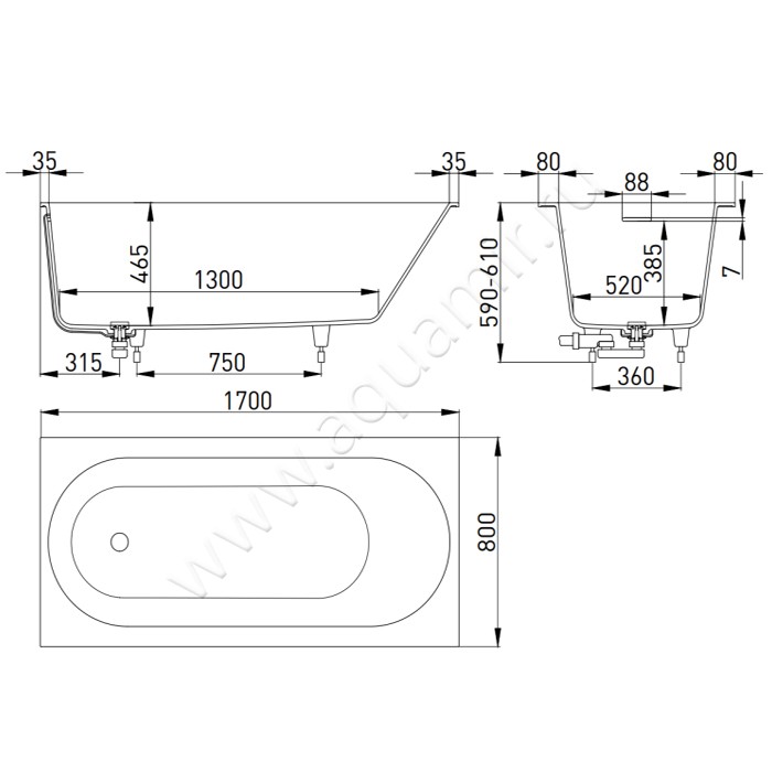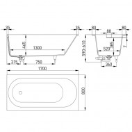 Ванна встраиваемая Salini ORNELLA KIT S-Sense Матовая 170х80 см, артикул товара 102414M, страна производства Италия.