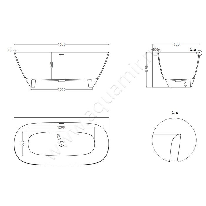 - Подходит для пристенного монтажа (Устанавливается вдоль стены или в угол ванной комнаты)
