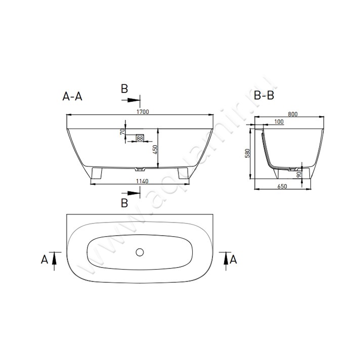 - Подходит для пристенного монтажа (Устанавливается вдоль стены или в угол ванной комнаты)