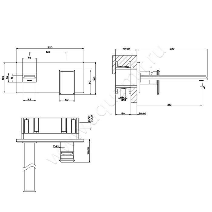 - Скрытый внутристенный монтаж