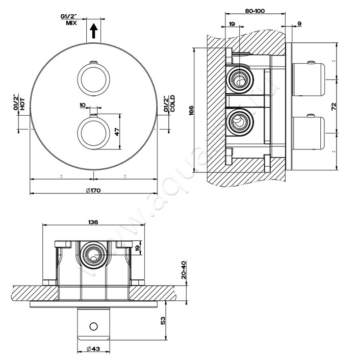 - Скрытый внутристенный монтаж
