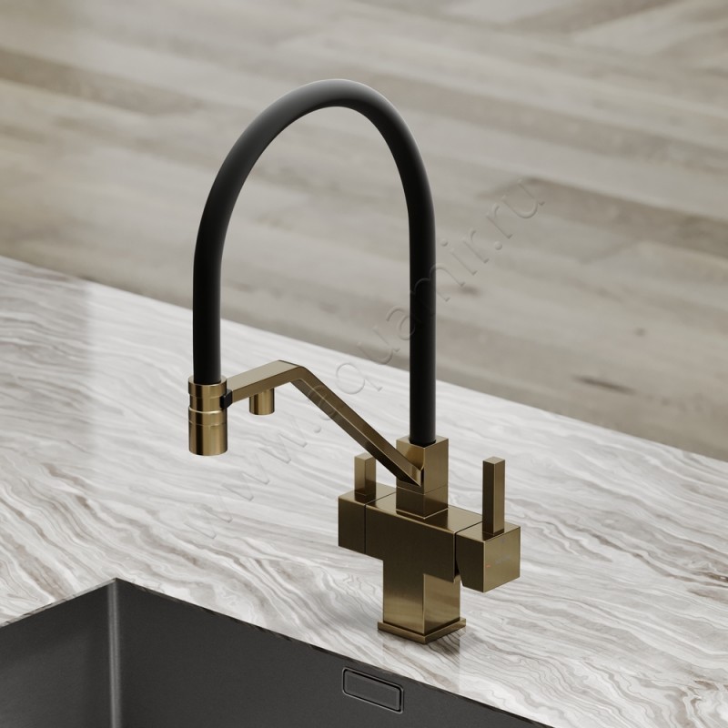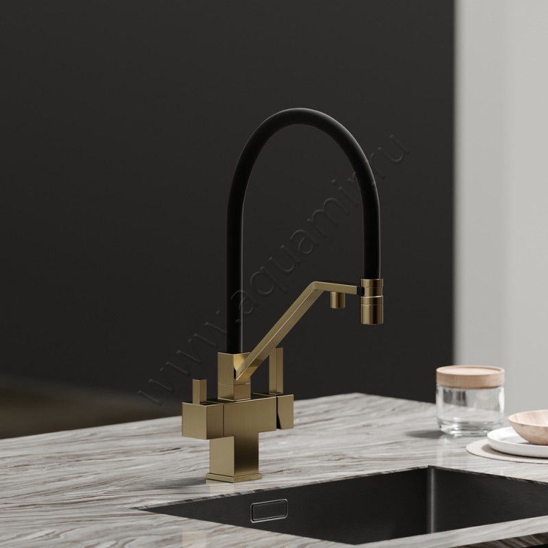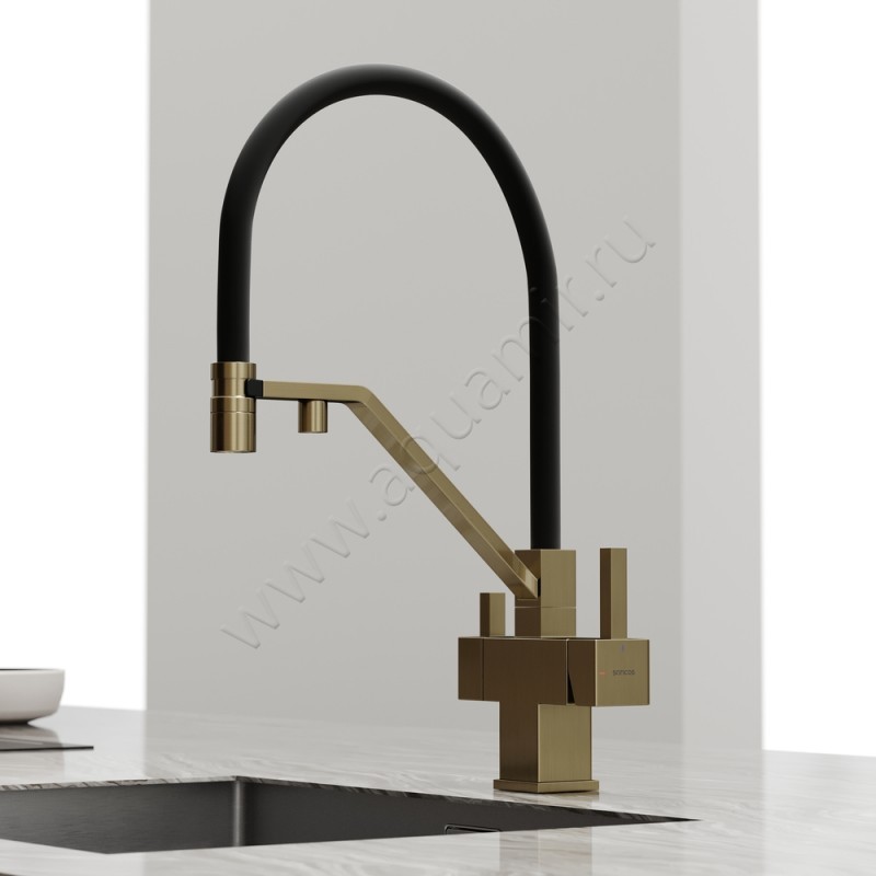 Смеситель для кухни с гибким изливом Sancos Loro с гибким изливом, золото матовое, артикул товара SC4007BG, страна производства Италия.