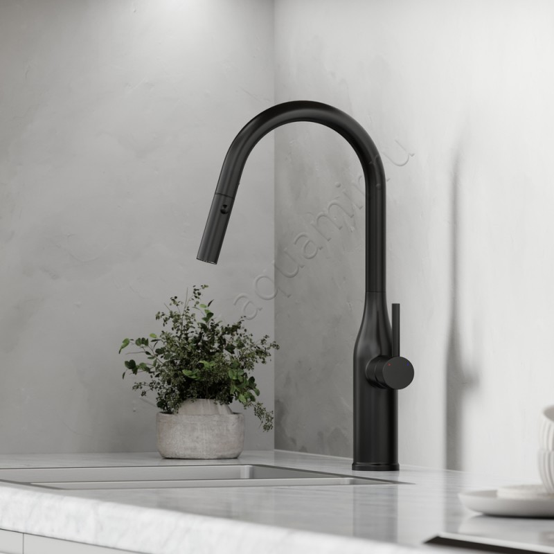 Смеситель для кухни c вытяжным изливом Sancos Grand черный матовый, артикул товара SC4002MB, страна производства Италия.