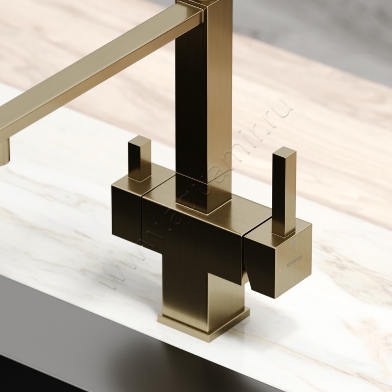 Смеситель для кухни с гибким изливом Sancos Moro с гибким изливом, золото матовое, артикул товара SC4006BG, страна производства Италия.