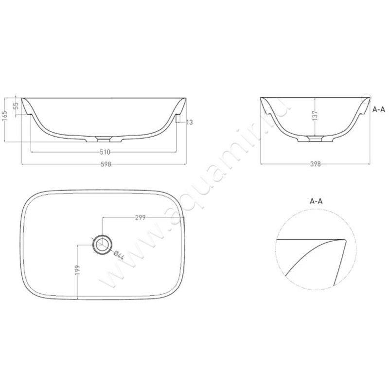 Раковина встраиваемая сверху на столешницу без отверстий Salini Marea 60 см (1802202M)