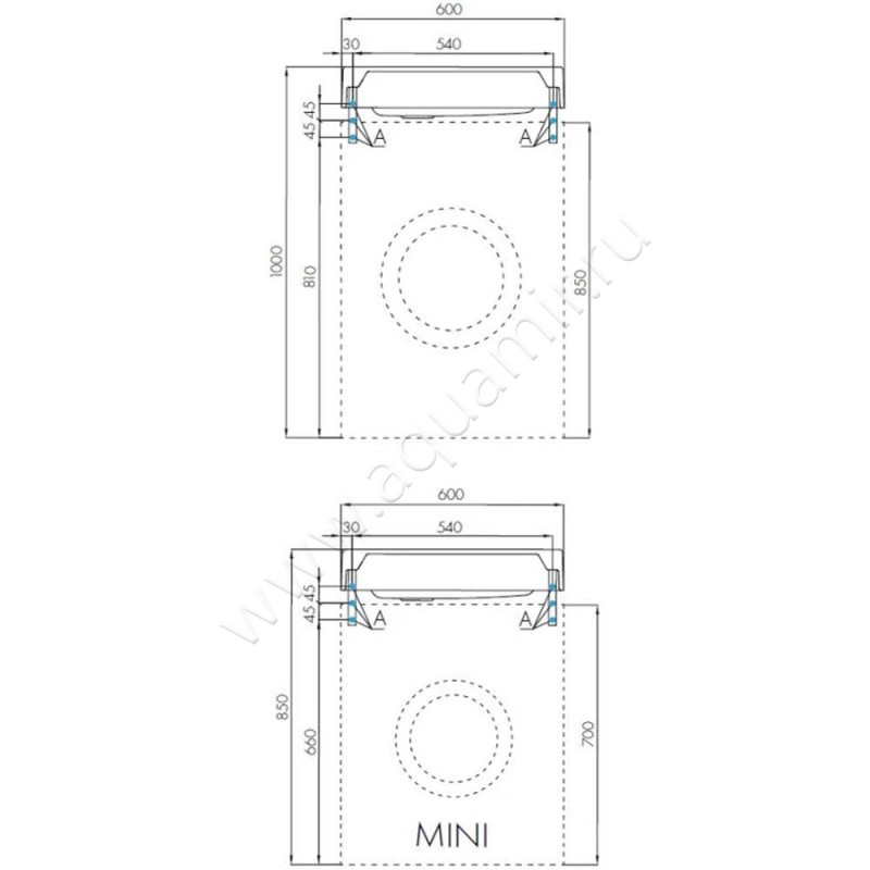 Раковина подвесная над стиральной машиной Aquaton Рейн 60 см, графит (1A72103KRW210)