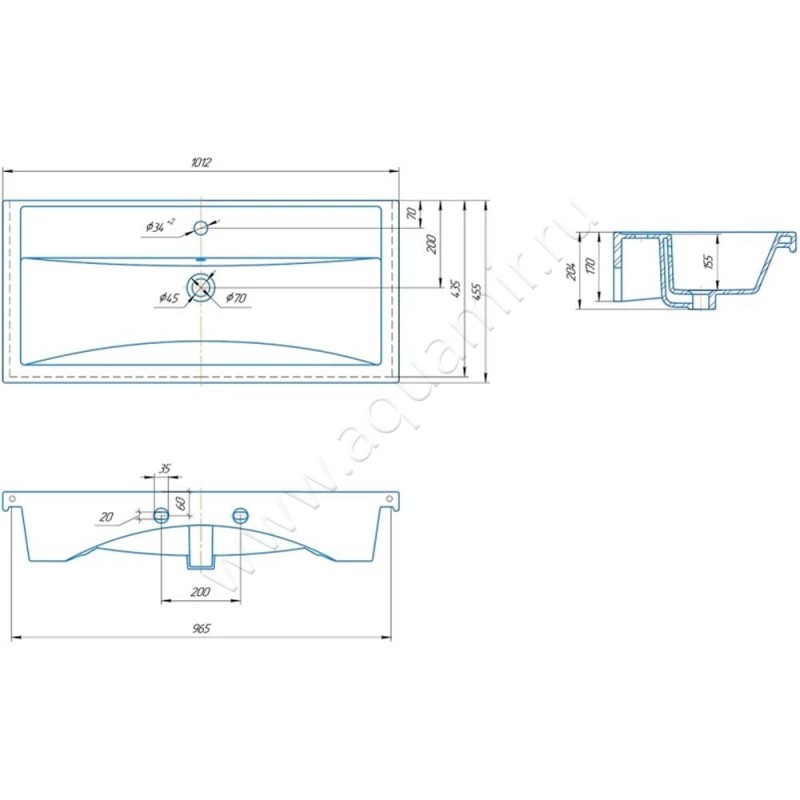 Раковина мебельная накладная Aqwella Фостер 102 см (4640021065204)
