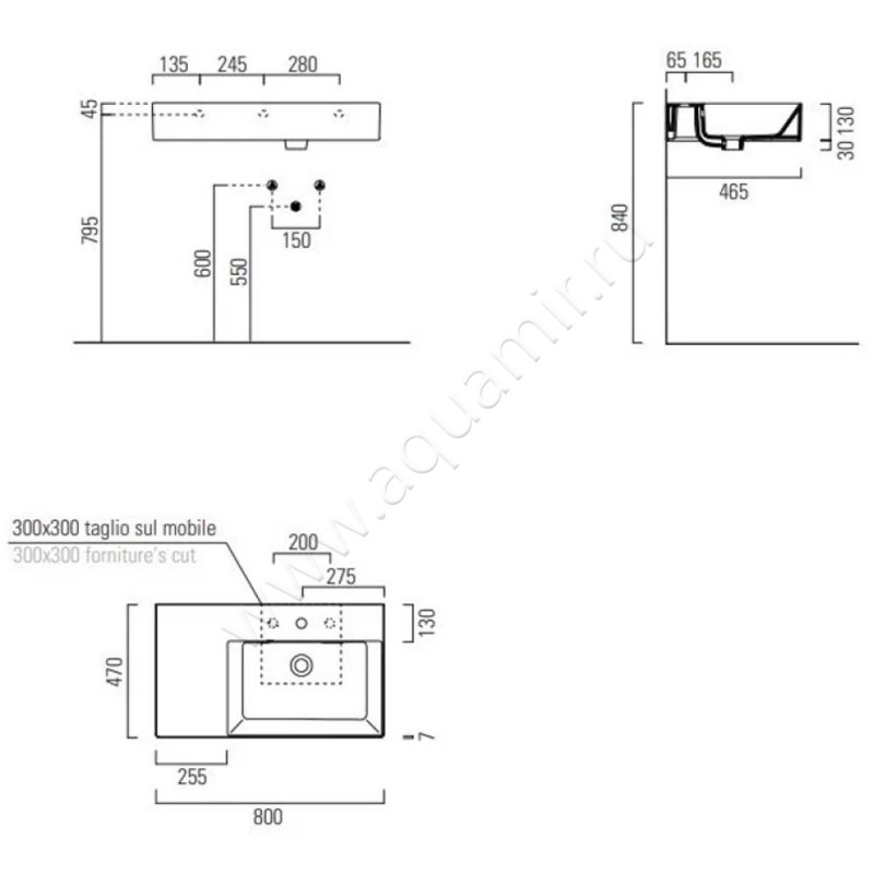 Раковина подвесная GSI Kube X 80 см (9457111)