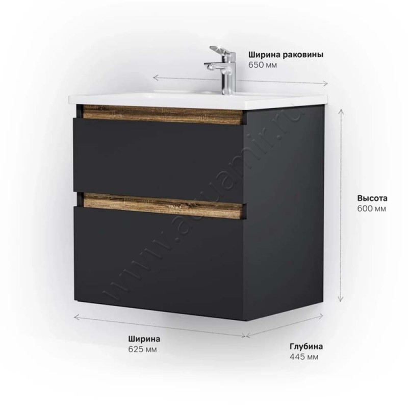 Тумба под раковину AM.PM X-Joy 62,5 см, черный матовый (M85AFHX0652BM)