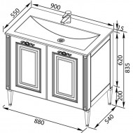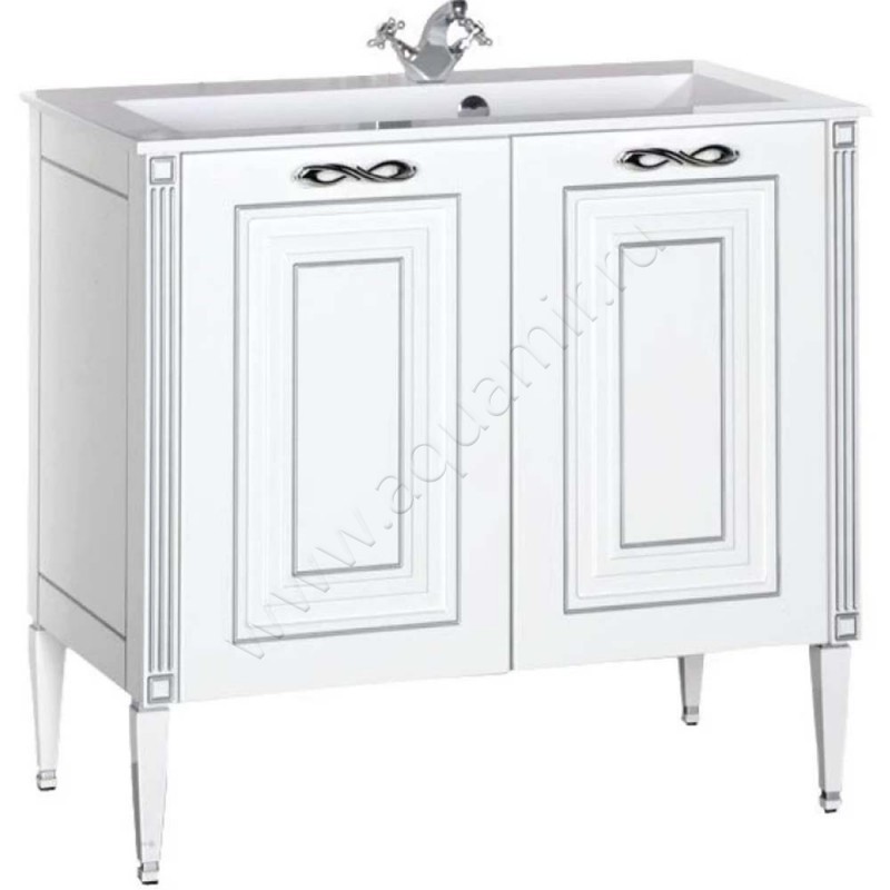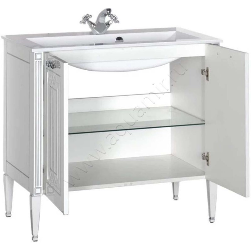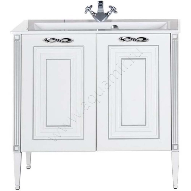 Тумба под раковину Aquanet Паола 88 см, белый/серебряная патина (00181762)