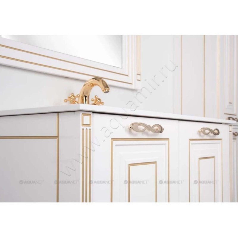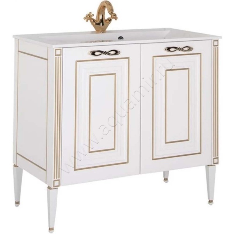 Тумба под раковину Aquanet Паола 88 см, светлое дерево/золотая патина (00186116)
