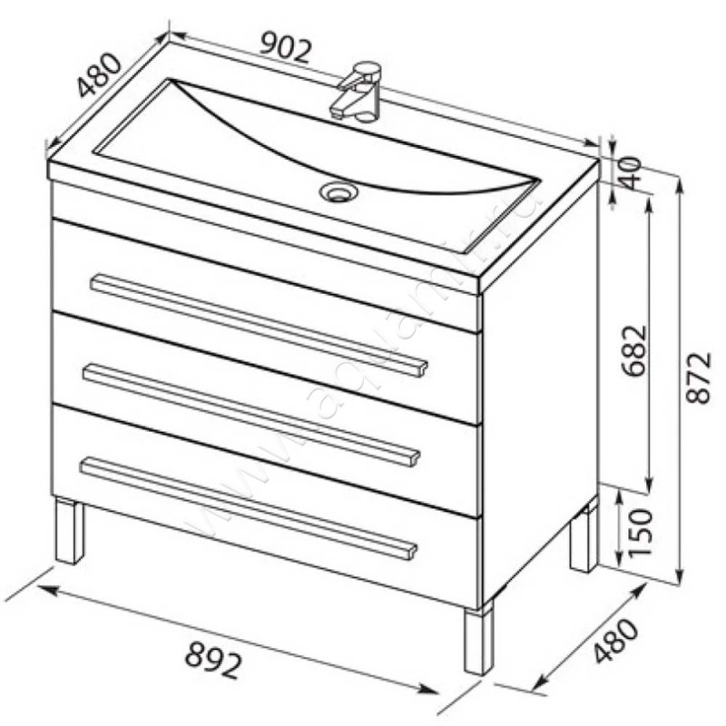 Тумба под раковину Aquanet Верона 89,2 см, белый, артикул товара 00178470, страна производства Китай.