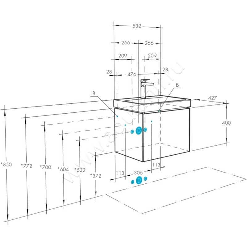 - Подвесной монтаж гарантирует легкость уборки и эстетику