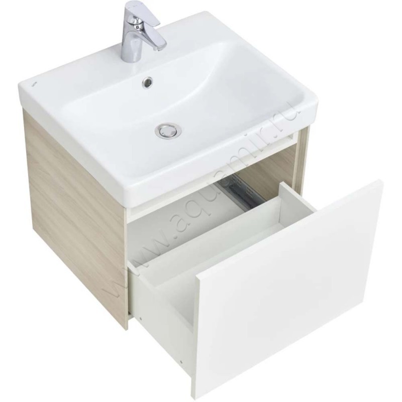 Тумба под раковину Aquaton Асти 53,2 см, белый глянец/ясень шимо/светлое дерево, артикул товара 1A263101AXD70, страна производства Россия.