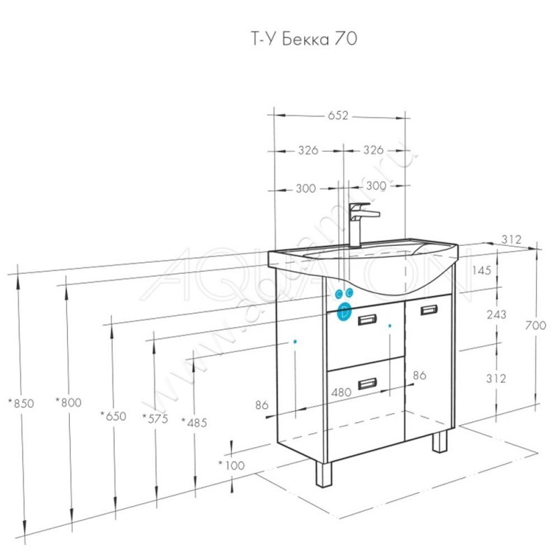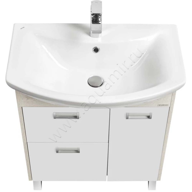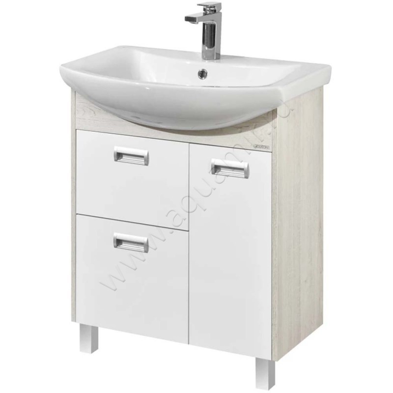 Тумба под раковину Aquaton Бекка 65,2 см, белый глянец/дуб сомерсет/светлое дерево, артикул товара 1A208701BAC20, страна производства Россия.