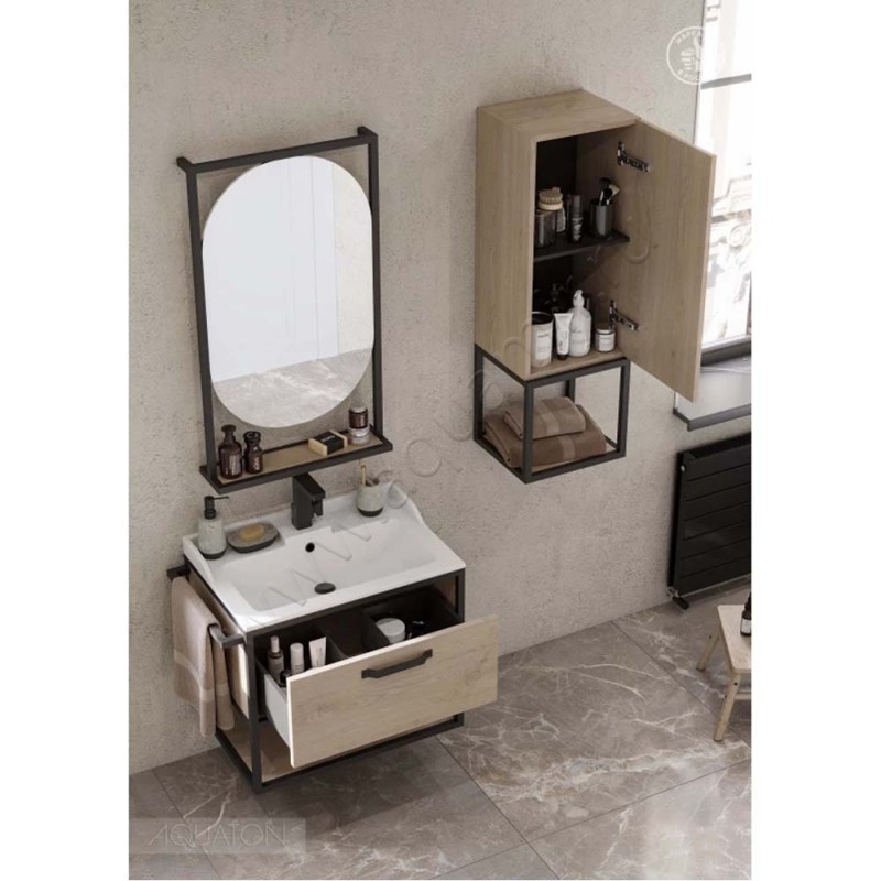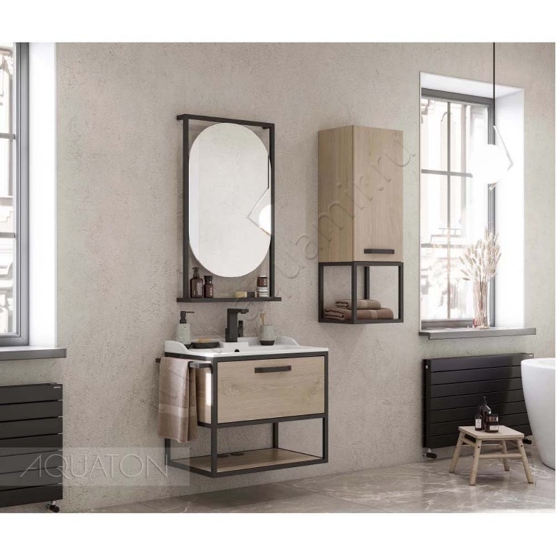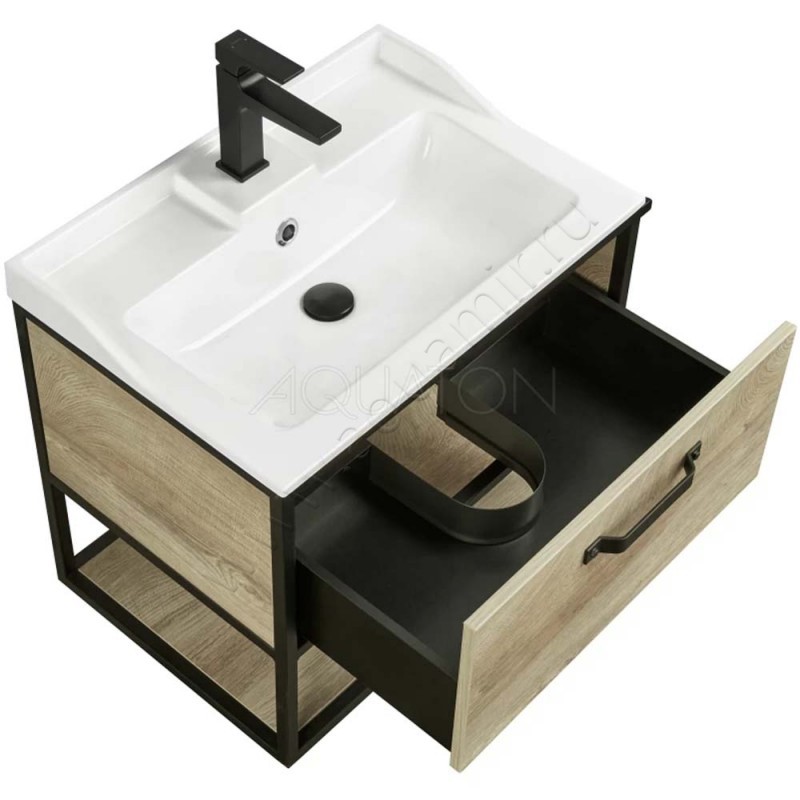 Тумба под раковину Aquaton Лофт Фабрик 64,2 см, светлое дерево/дуб эндгрейн/черный, артикул товара 1A242301LTDU0, страна производства Россия.