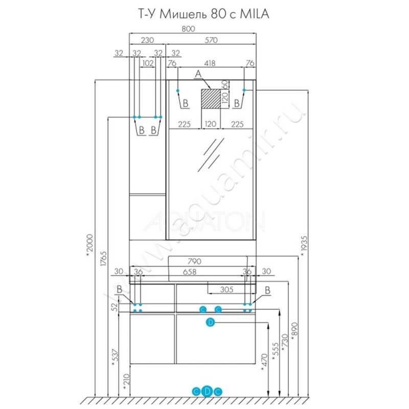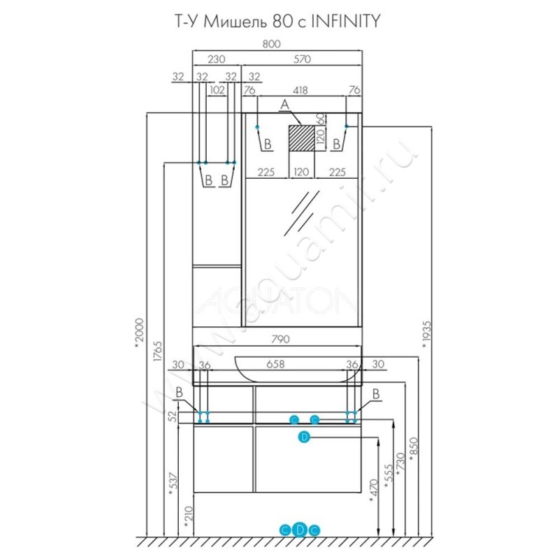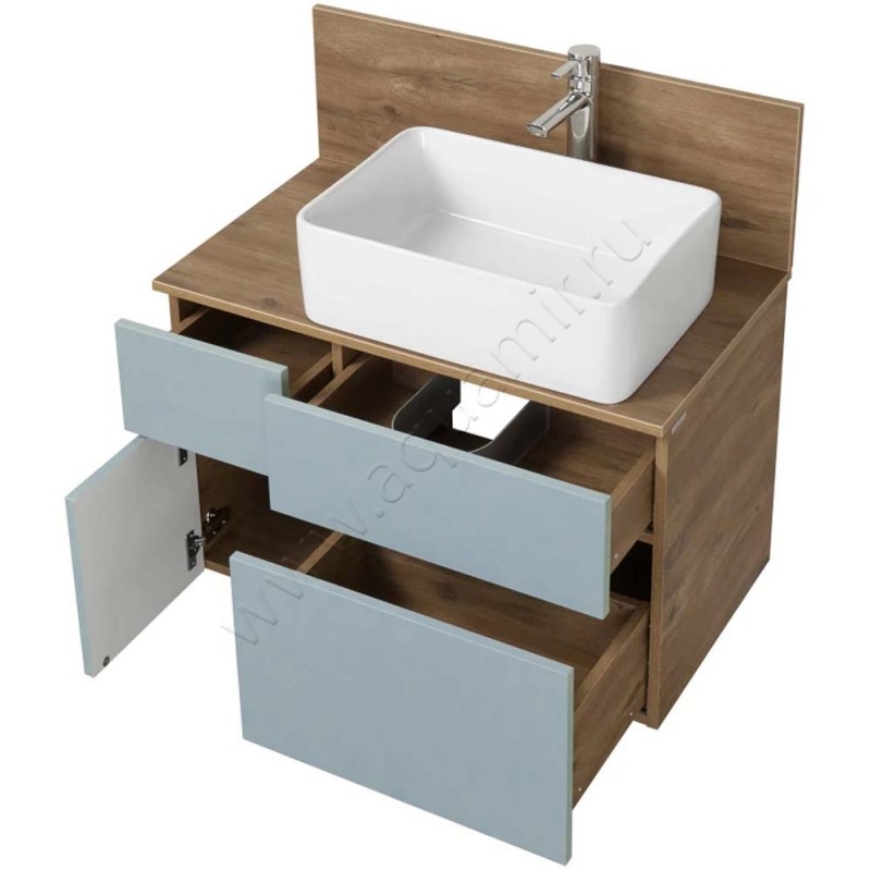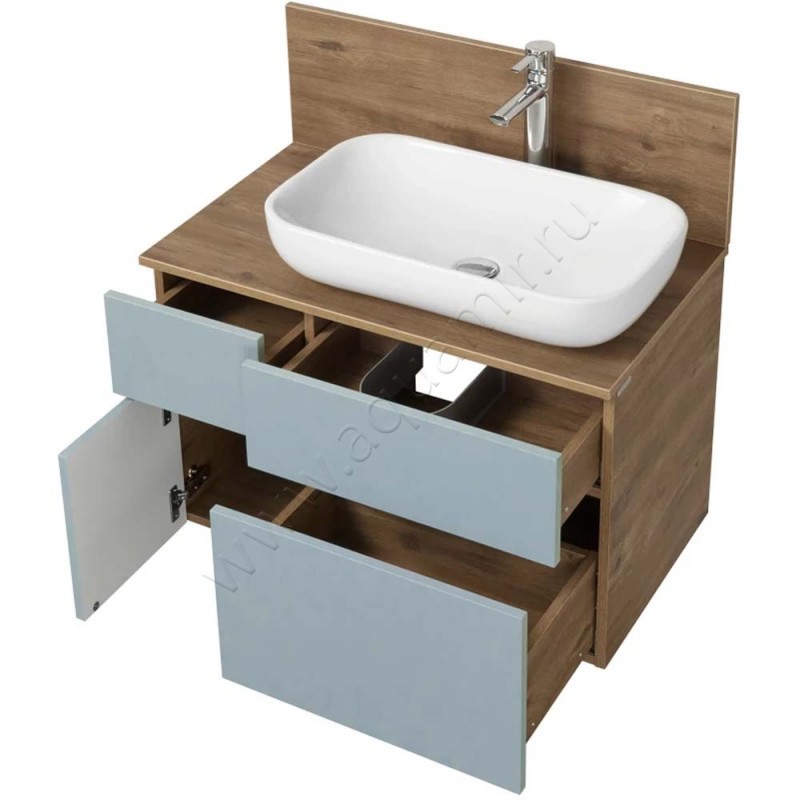 Тумба под раковину Aquaton Мишель 79 см, синий/дуб рустикальный/темное дерево, артикул товара 1A256801MIX30, страна производства Россия.