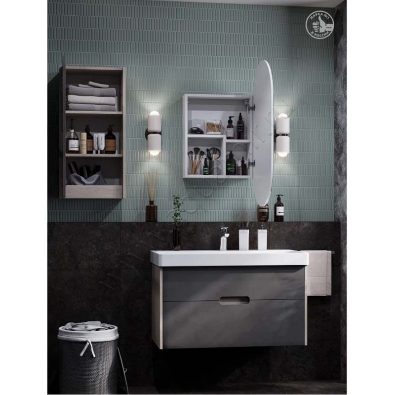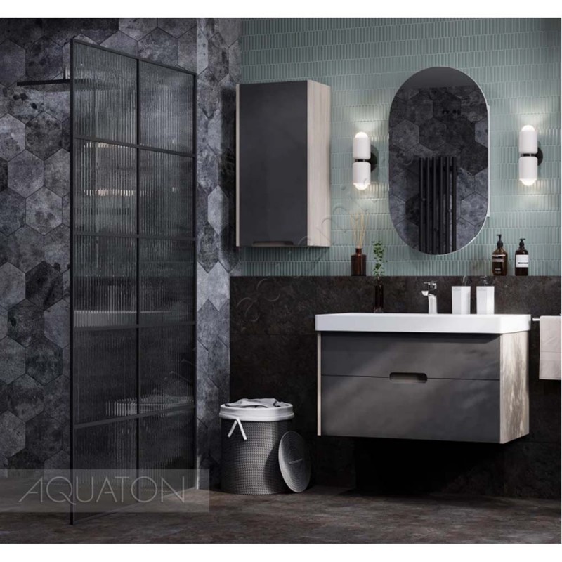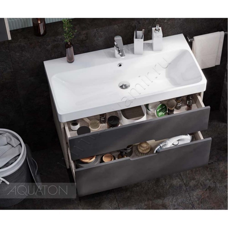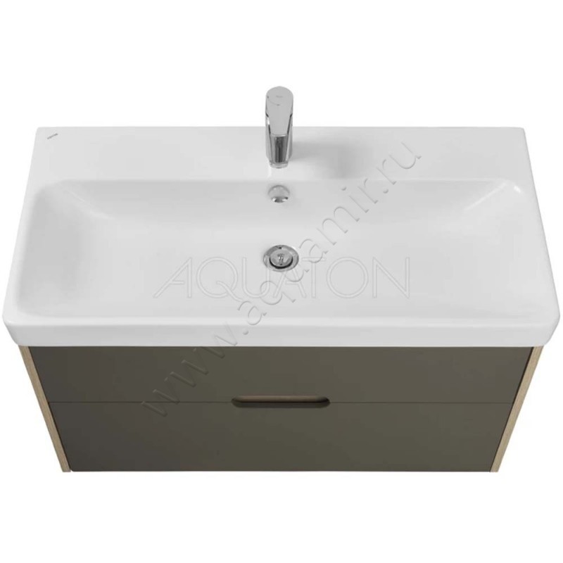 Тумба под раковину Aquaton Оливия 88,2 см, антрацит/дуб ойстер/светлое дерево (1A254401OLUG0)