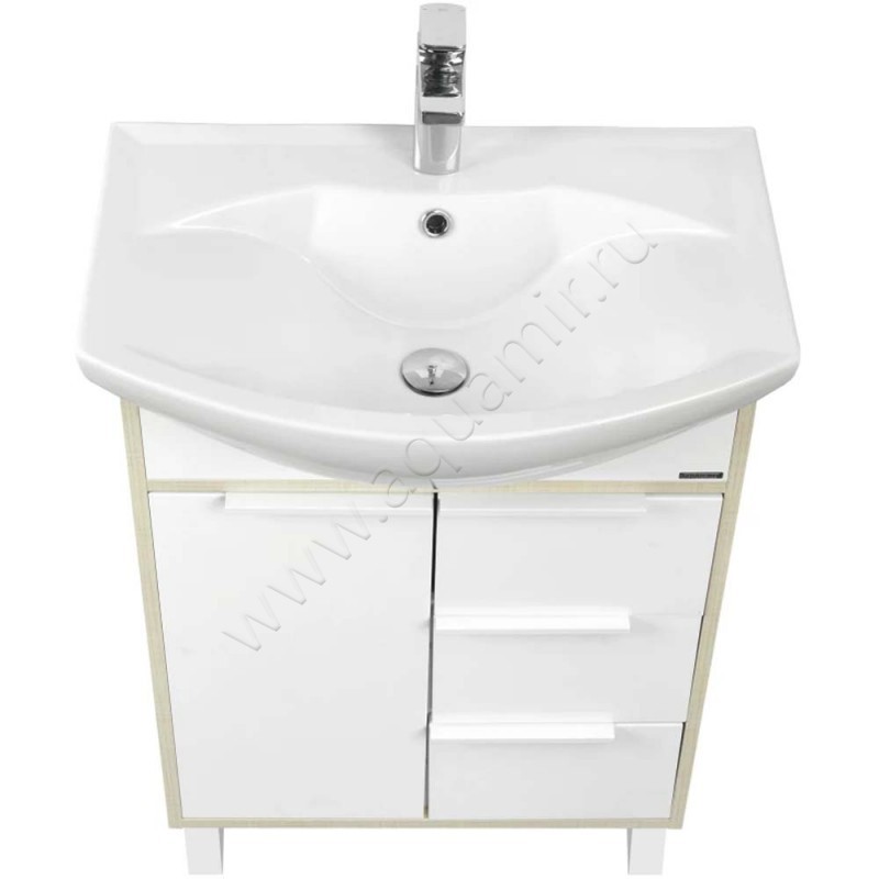 Тумба под раковину Aquaton Рико 59,4 см, белый глянец/ясень фабрик/светлое дерево, артикул товара 1A213301RIB90, страна производства Россия.