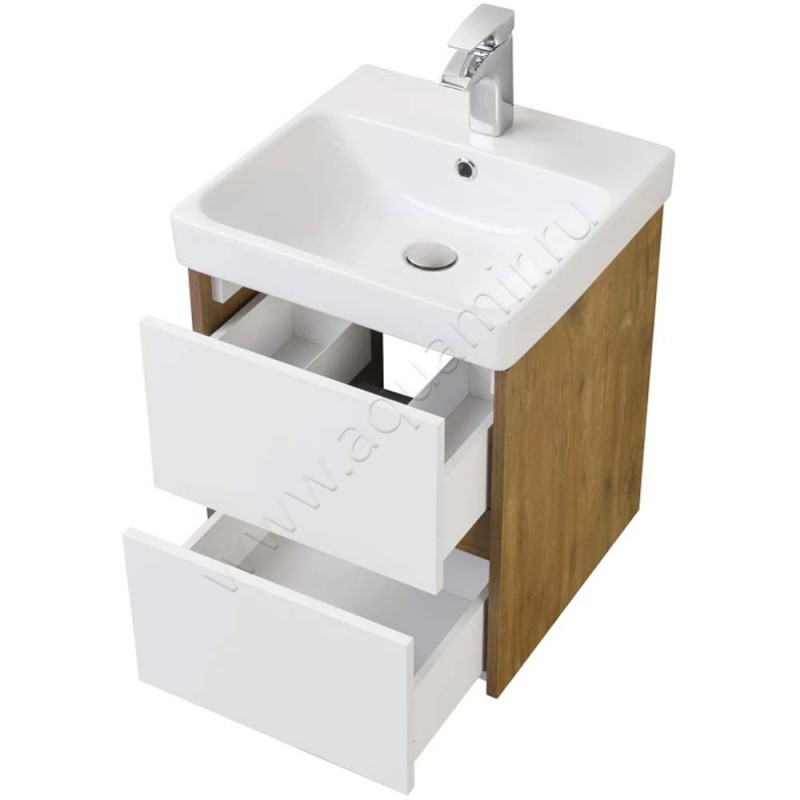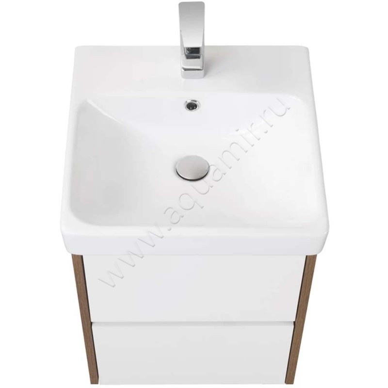 Тумба под раковину Aquaton Сканди 43,2 см, белый глянец/дуб рустикальный/темное дере, артикул товара 1A251601SDZ90, страна производства Россия.