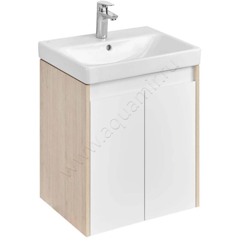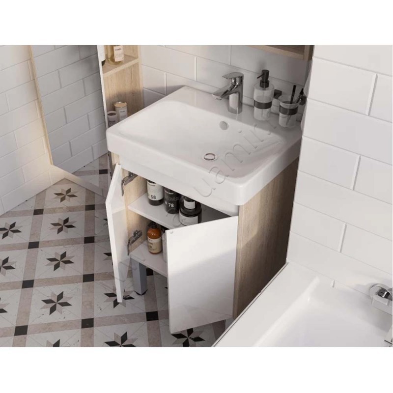 Тумба под раковину Aquaton Сканди 48 см, белый глянец/дуб верона/светлое дерево, артикул товара 1A278801SDB20, страна производства Россия.