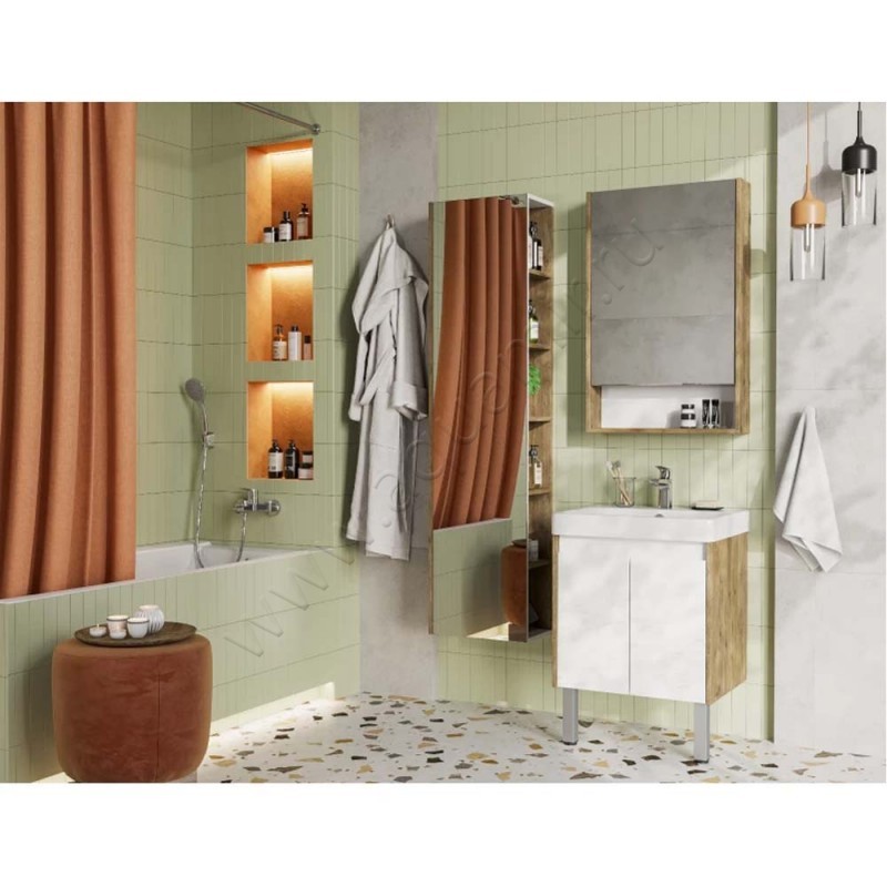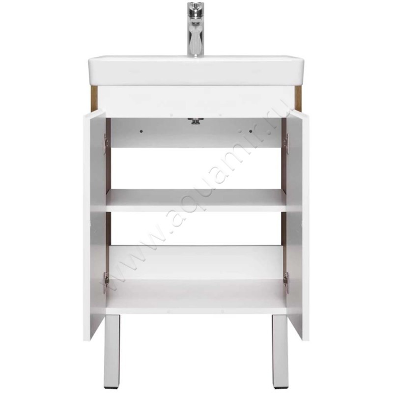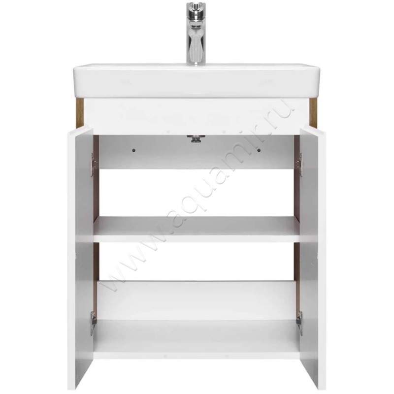 Тумба под раковину Aquaton Сканди 48 см, белый глянец/дуб рустикальный/темное дерево, артикул товара 1A278801SDZ90, страна производства Россия.