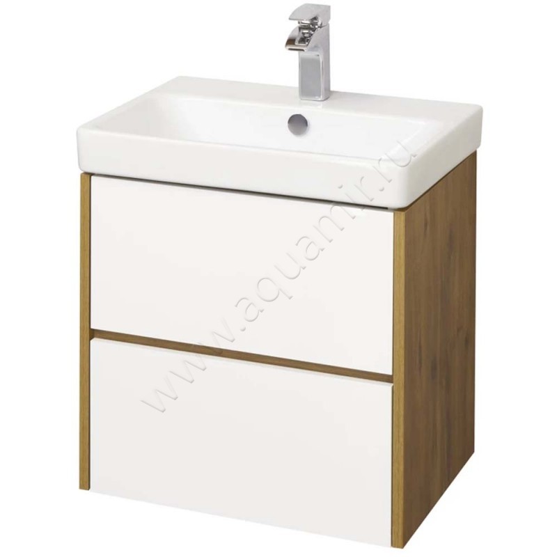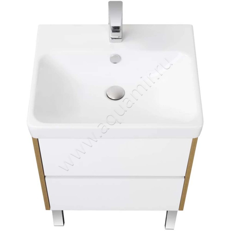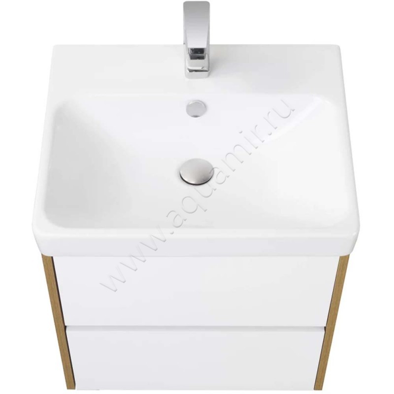 Тумба под раковину Aquaton Сканди 53,2 см, белый глянец/дуб рустикальный/темное дере, артикул товара 1A251701SDZ90, страна производства Россия.