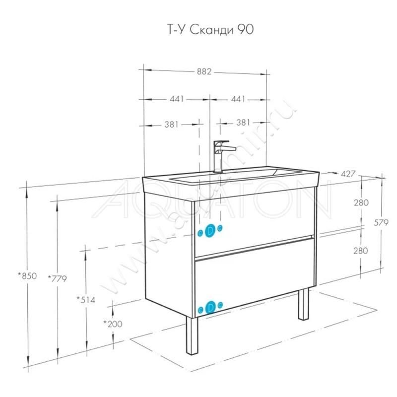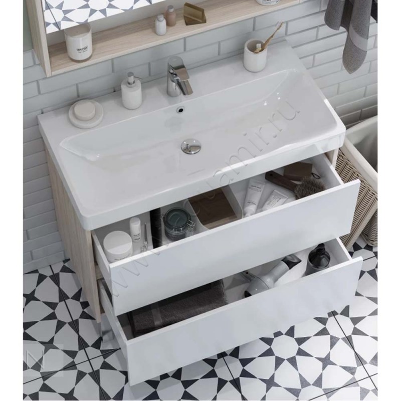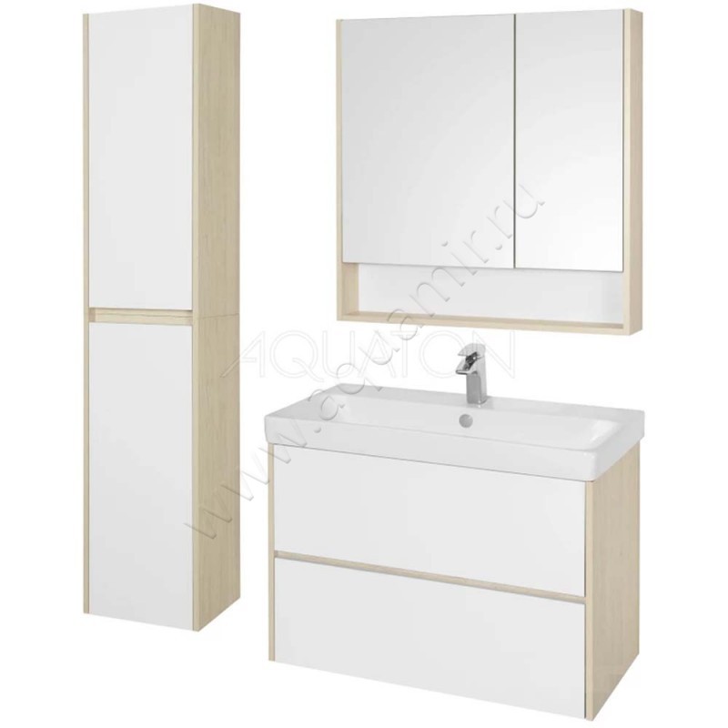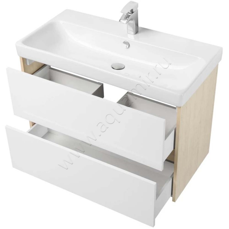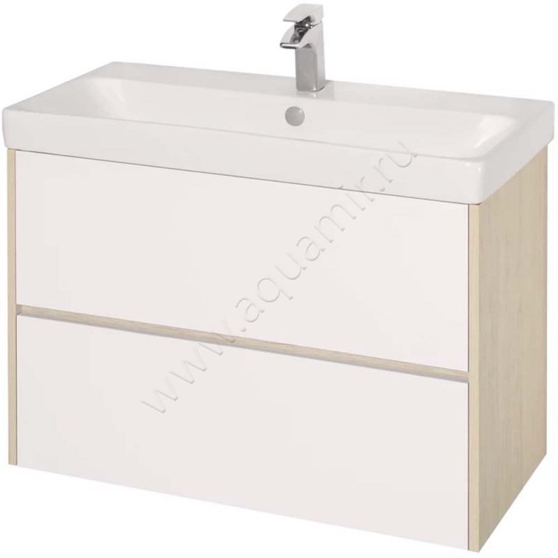 Тумба под раковину Aquaton Сканди 88,2 см, белый глянец/дуб верона/светлое дерево, артикул товара 1A251901SDB20, страна производства Россия.