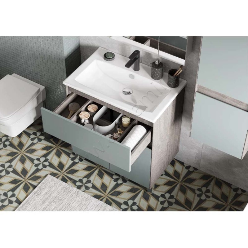 Тумба под раковину Aquaton Форест 73 см, зеленый/дуб рошелье, артикул товара 1A278301FR9C0, страна производства Россия.