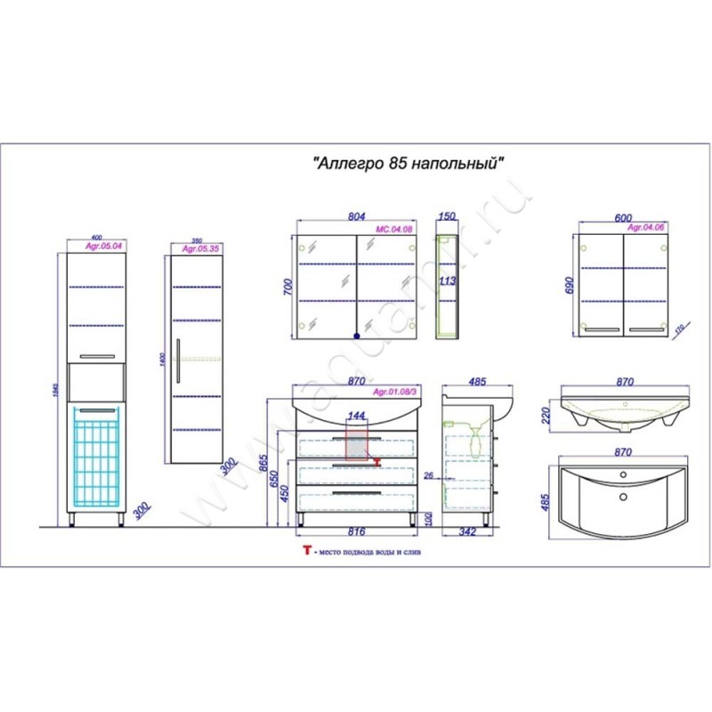 Тумба под раковину Aqwella Allegro , артикул товара AGR01083, страна производства Россия.