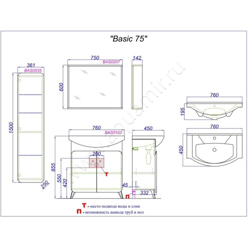 Тумба под раковину Aqwella Basic , артикул товара BAS0107DZ, страна производства Россия.