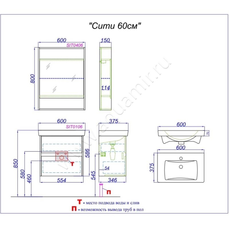 Тумба под раковину Aqwella City (CI0106DK)