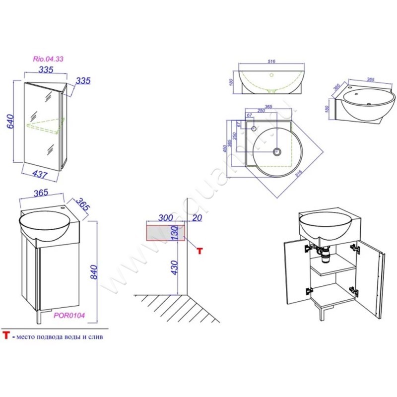 Тумба под раковину Aqwella Porto , артикул товара POR0104DB, страна производства Россия.