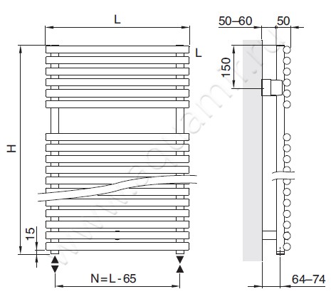 Электрический полотенцесушитель Arbonia Bagnowatt 50 см (BTW115 500 WKS 1 RAL 9016)