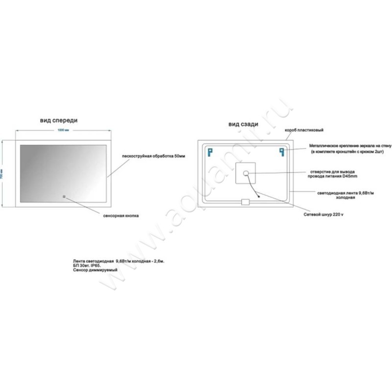 Зеркало с подсветкой Art&Max Soli (AMSOL1000700DSFH)