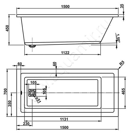 - Предусмотрена установка смесителя на борт ванны