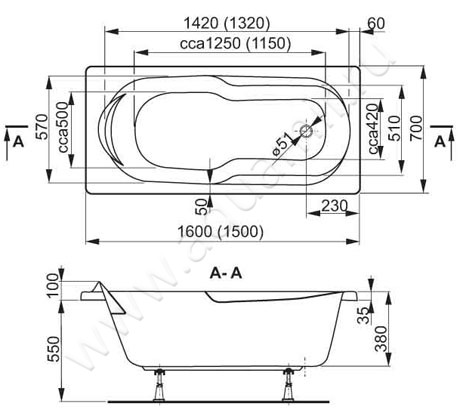 - Предусмотрена установка смесителя на борт ванны